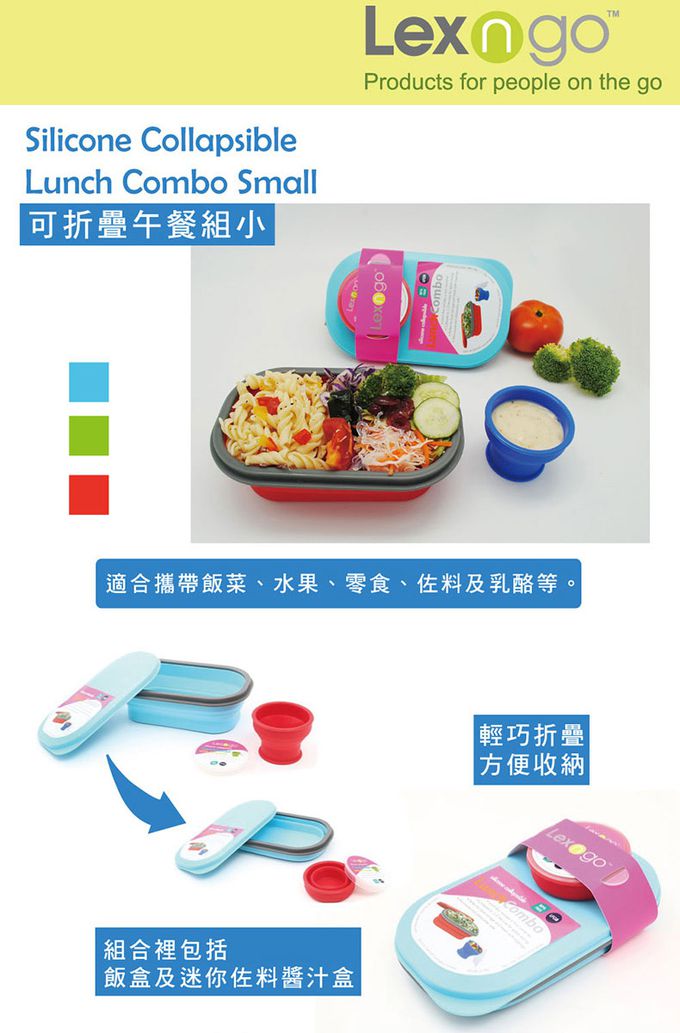 可折疊午餐組-藍 (大)-午餐盒-850ml*1+醬料罐-80ml*1