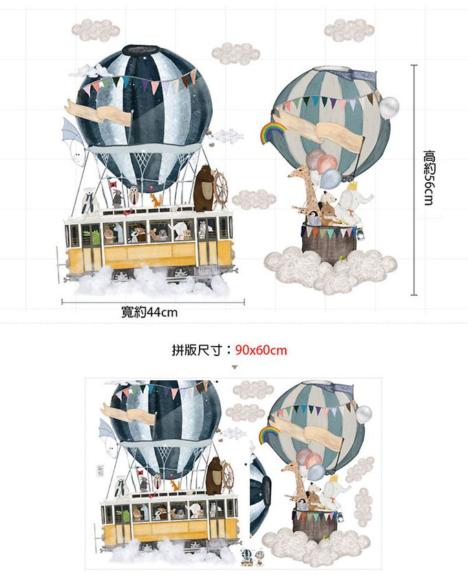 時尚壁貼-動物風熱氣球 (60cm*90cm)