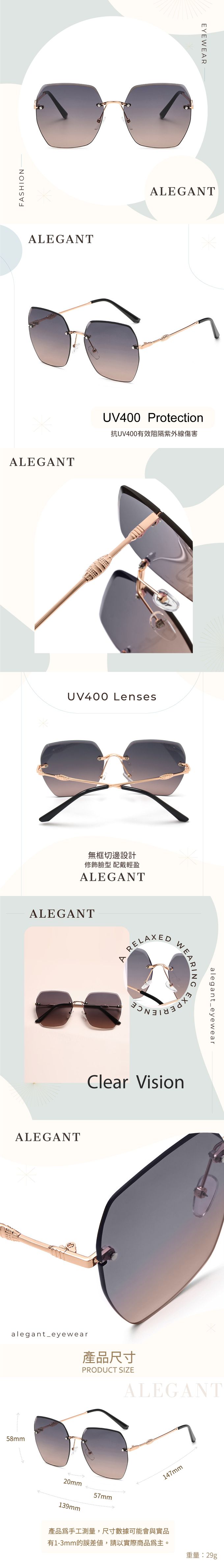 不規則復古無框設計,以金色鏡腳勾勒鏡片線條搭配果凍漸層粉色鏡面,設計優雅而精緻使復古與現代美感平衡調配,增加配戴的舒適度抗UV400有效阻隔紫外線傷害,時尚又吸睛可調式鼻墊,低鼻樑也適合配戴,適合各種臉型
