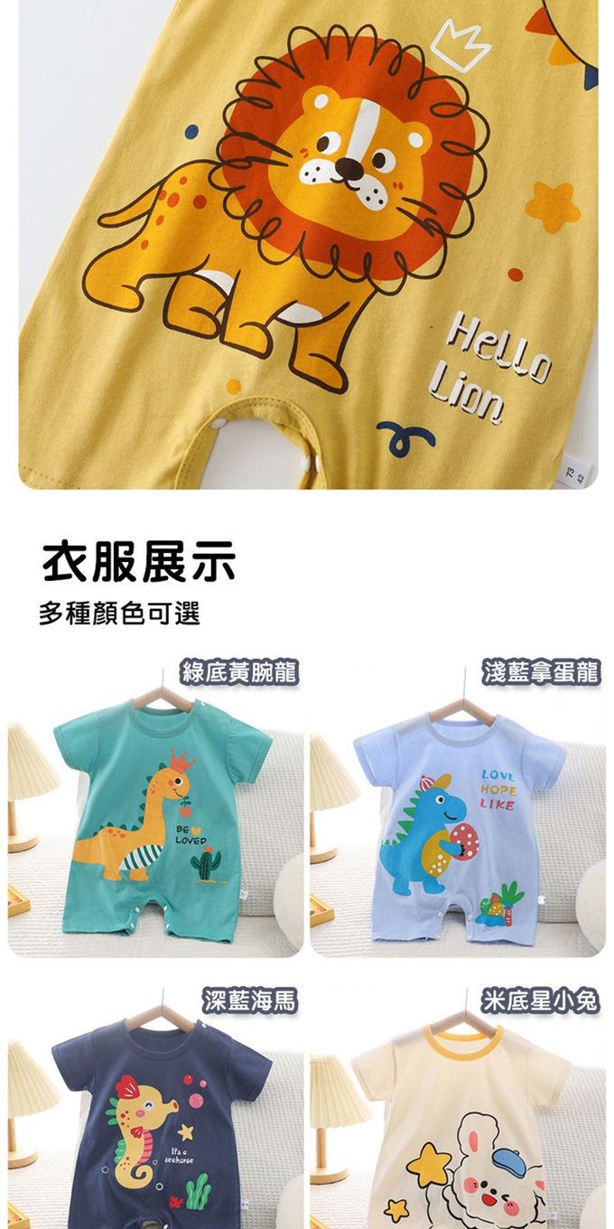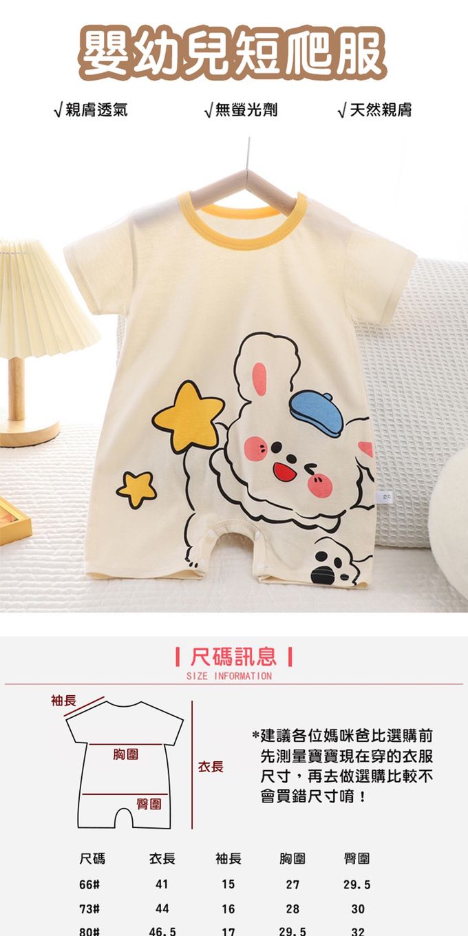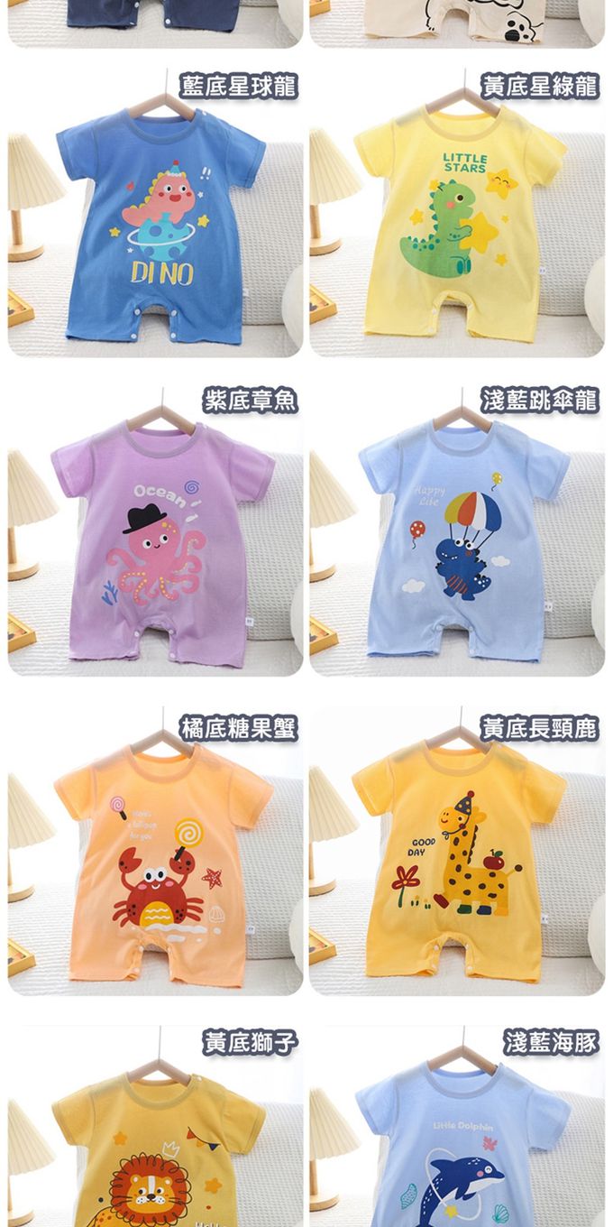 • 品名:短袖包屁衣 薄款夏季連身衣 嬰兒服 短袖童裝 外出包屁衣