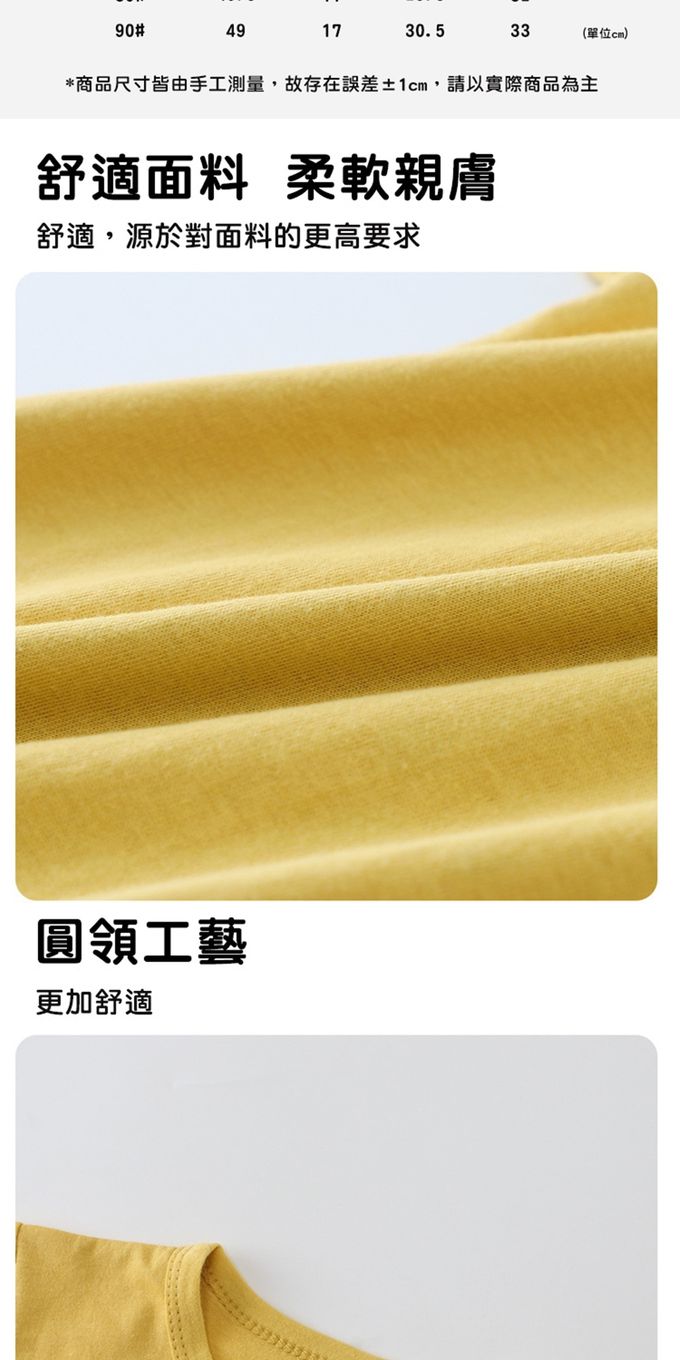 【適用年齡】圖例中都有平鋪實量尺寸表,建議拿一件孩子的衣服篩選比對