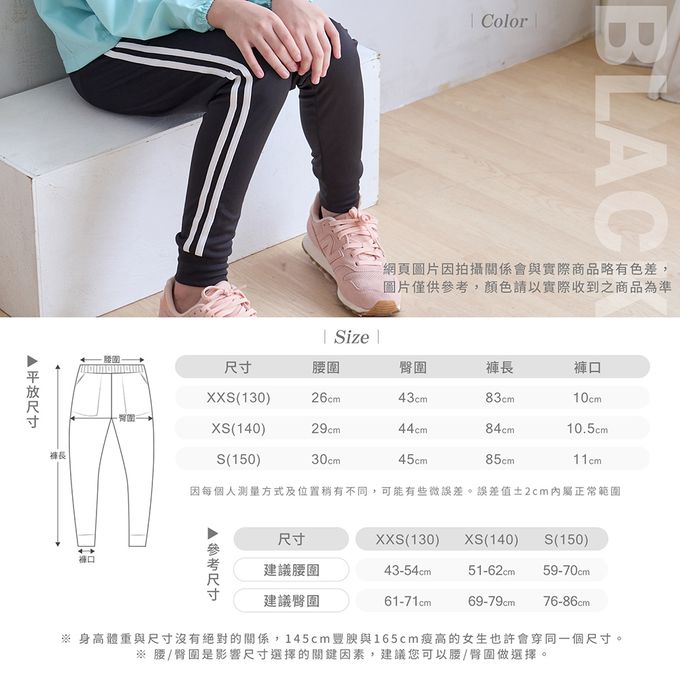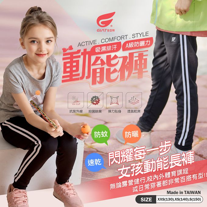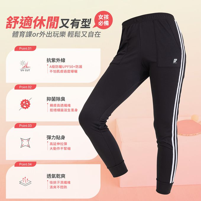 防曬UPF50+吸濕排汗束口運動褲-大女童款-黑色