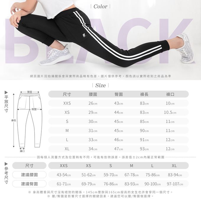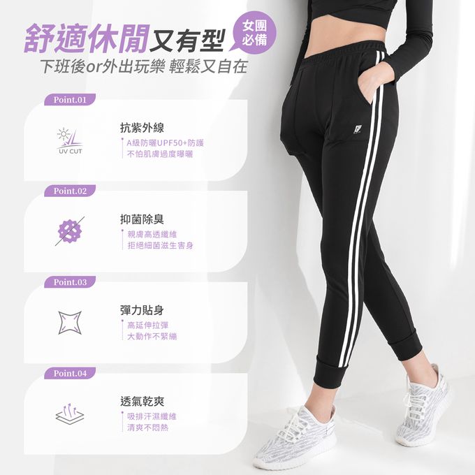 防曬UPF50+吸濕排汗束口運動褲-女款-黑色