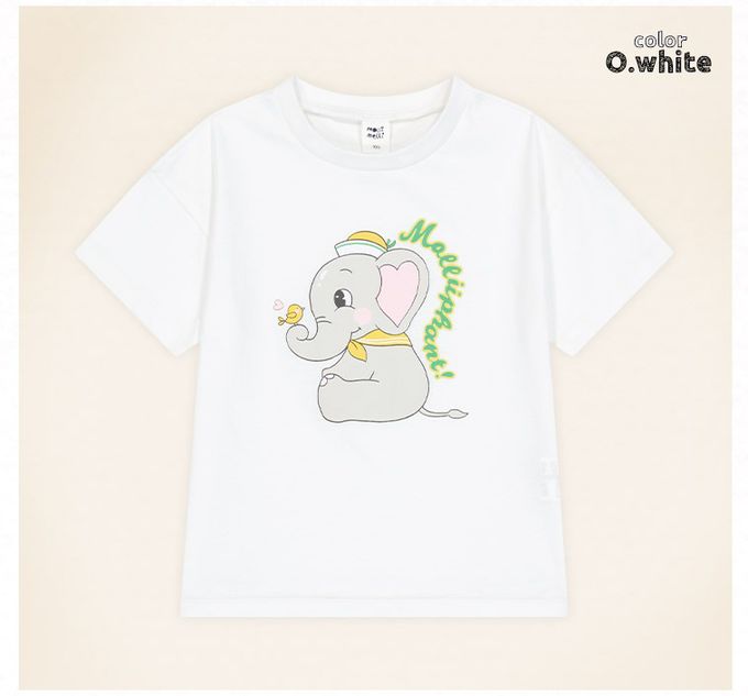 韓國 mollimelli - 可愛大象圖案純棉短袖上衣-白