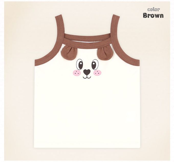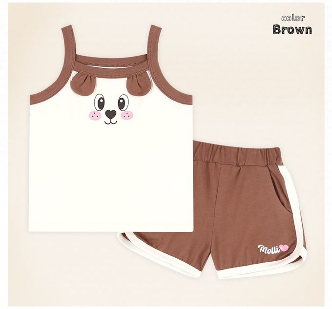 韓國 mollimelli - 萌萌狗狗純棉細肩帶背心套裝-米X咖啡