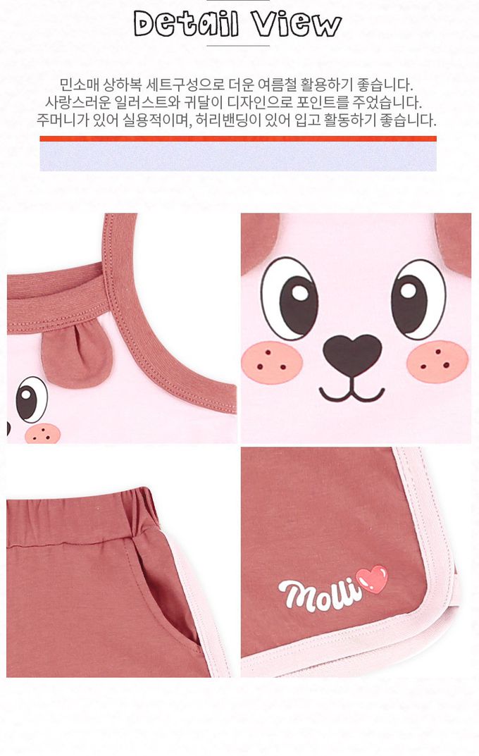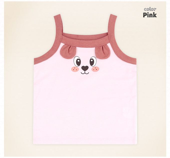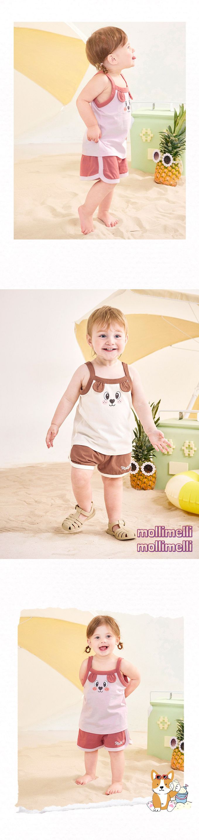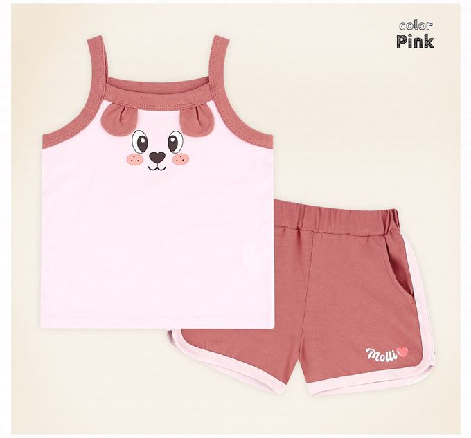 韓國 mollimelli - 萌萌狗狗純棉細肩帶背心套裝-乾燥玫瑰粉