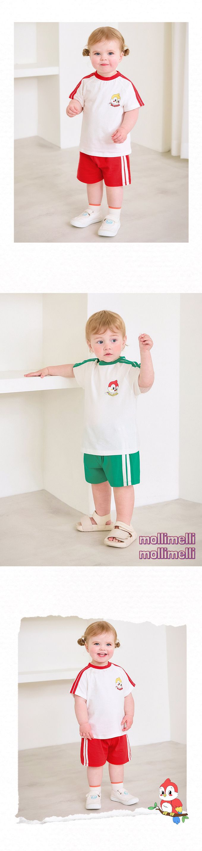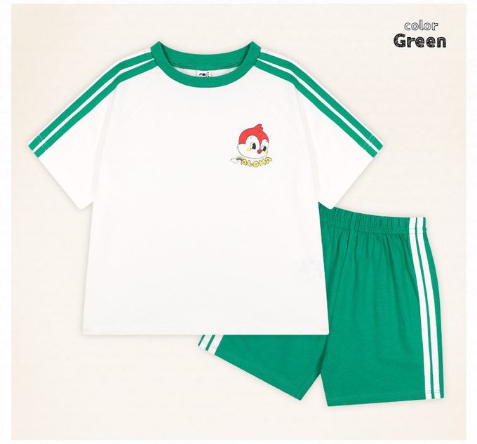 韓國 mollimelli - Aloha小鳥運動風純棉短袖套裝-綠