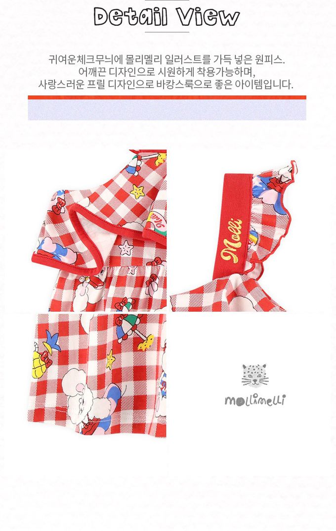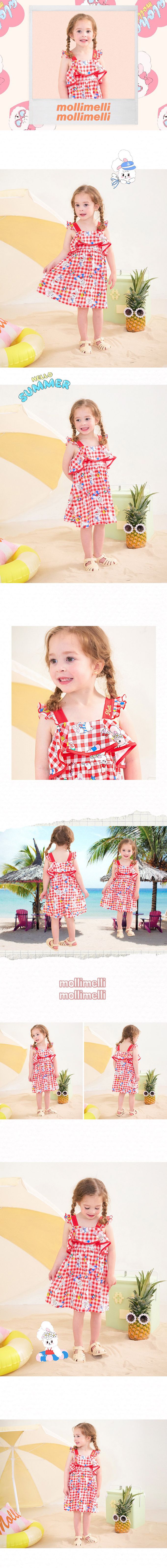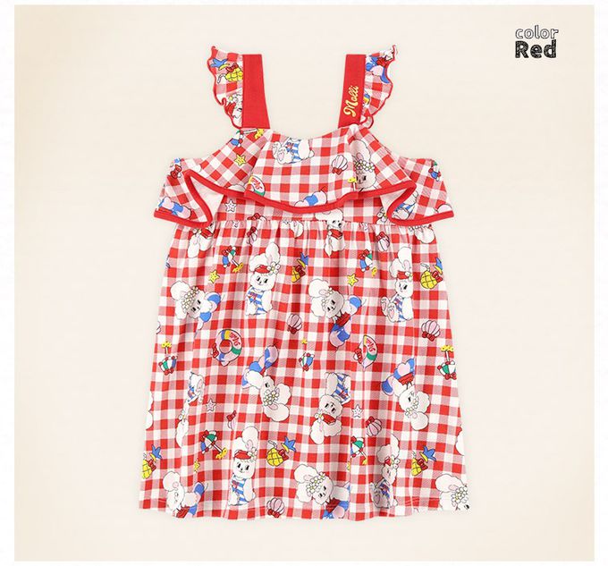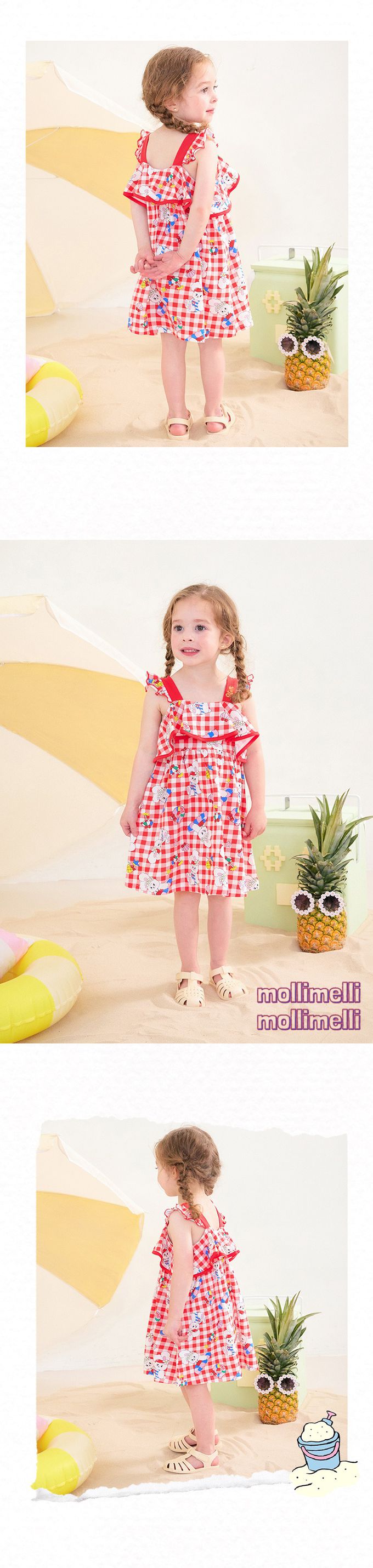 韓國 mollimelli - 泳圈兔兔荷葉邊裝飾格紋洋裝-紅