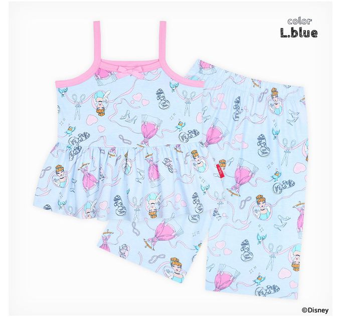 韓國 mollimelli - (聯名款)公主細肩背心上衣X七分褲套裝-卡通人物仙杜瑞拉-藍紫