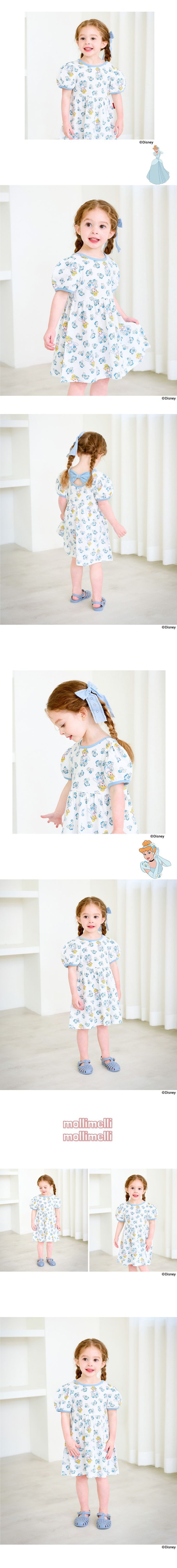 韓國 mollimelli - (聯名款)花束公主挖背泡泡短袖洋裝-卡通人物仙杜瑞拉-白
