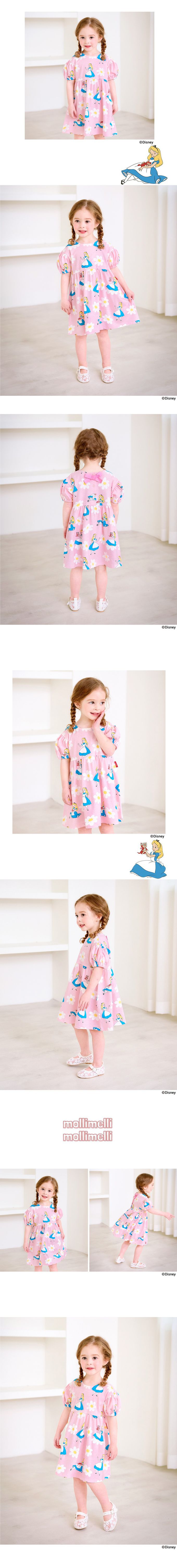 韓國 mollimelli - (聯名款)花朵公主泡泡短袖洋裝-卡通人物愛麗絲-粉