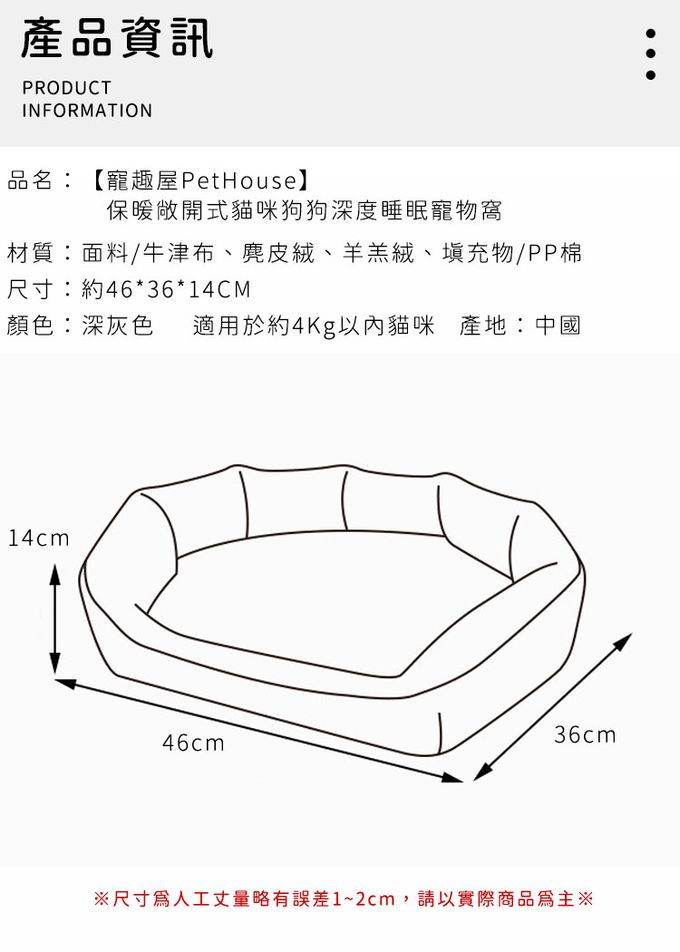 品名:保暖敞開式貓咪狗狗深度睡眠寵物窩
