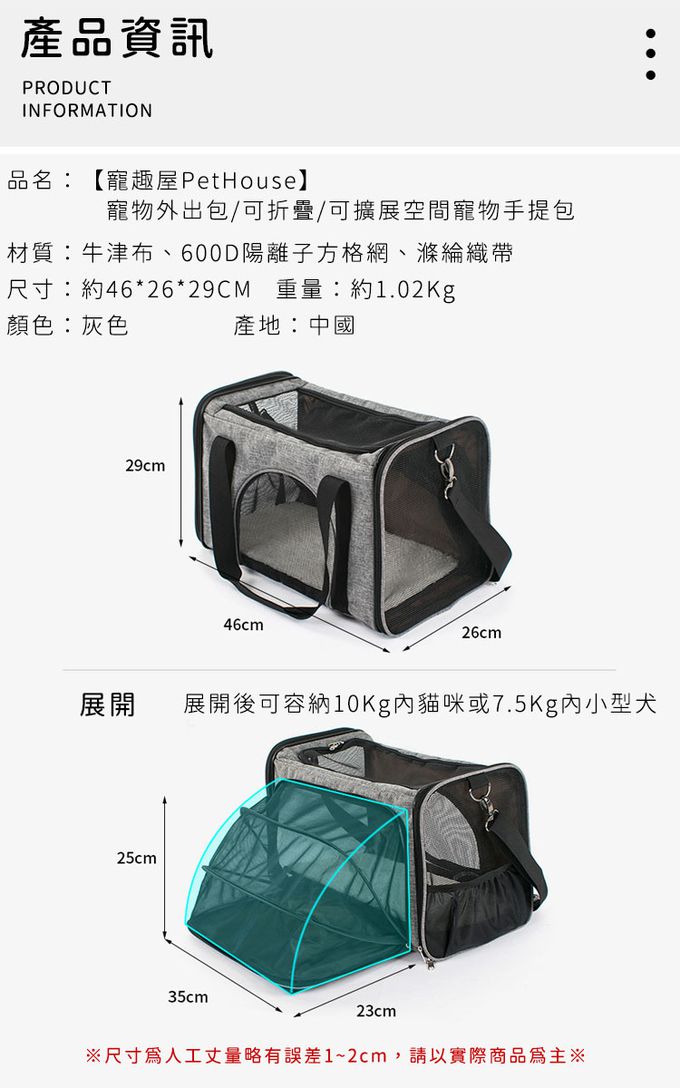 品名:寵物外出包/可折疊/可擴展空間寵物手提包