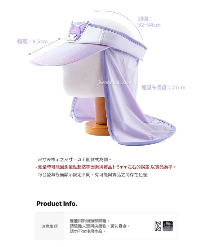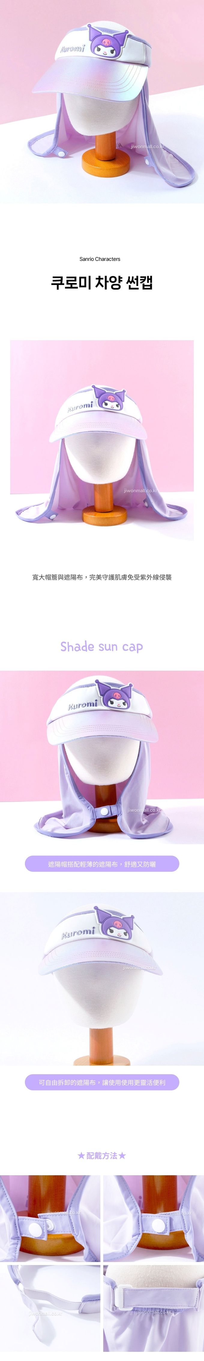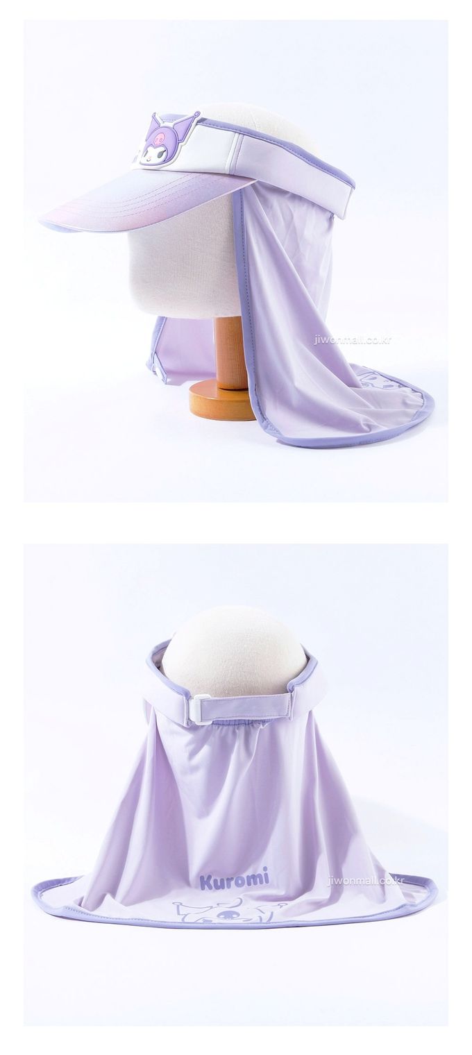 韓國配件連線 - 2way 可拆式遮脖布絢彩遮陽帽-卡通人物庫洛米-紫 (頭圍約52~54cm)