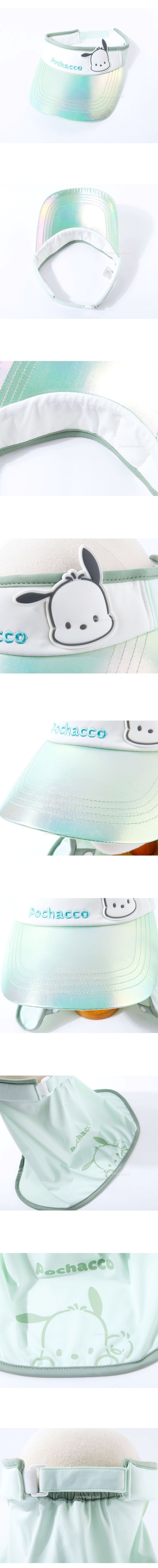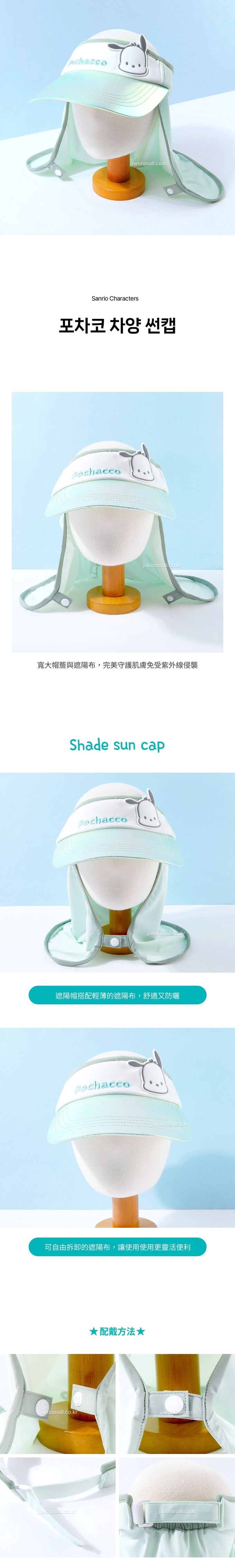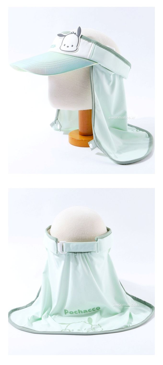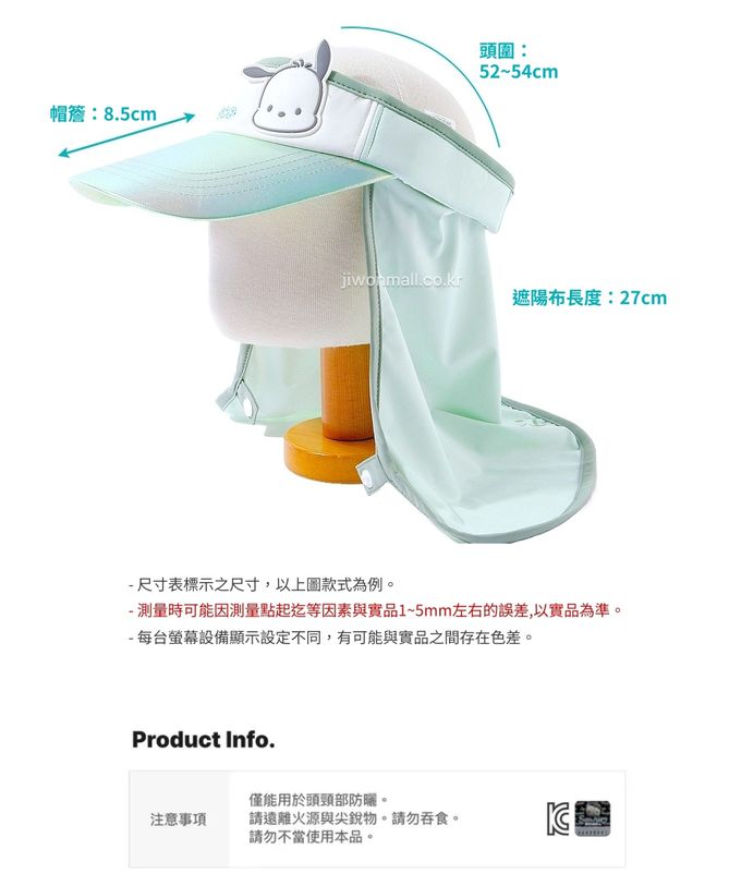 韓國配件連線 - 2way 可拆式遮脖布絢彩遮陽帽-卡通人物帕恰狗-淺綠 (頭圍約52~54cm)