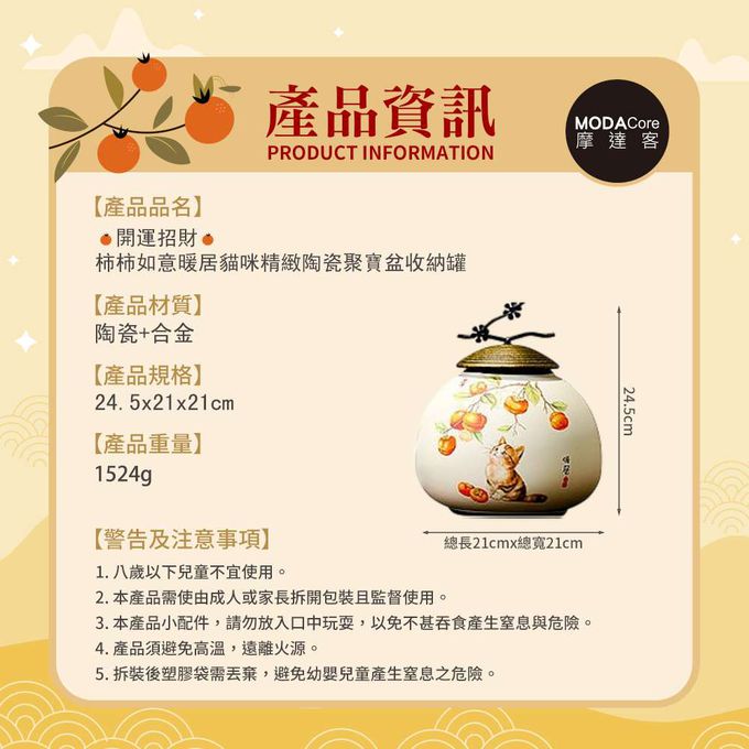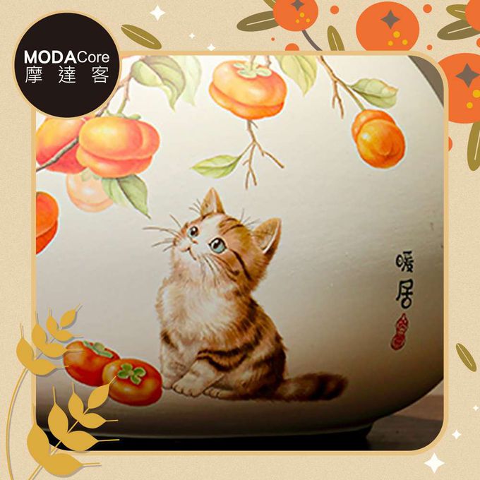 品名:◉開運招財◉柿柿如意暖居貓咪精緻陶瓷聚寶盆收納罐_客廳玄關臥室好風水好運勢