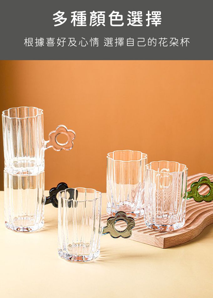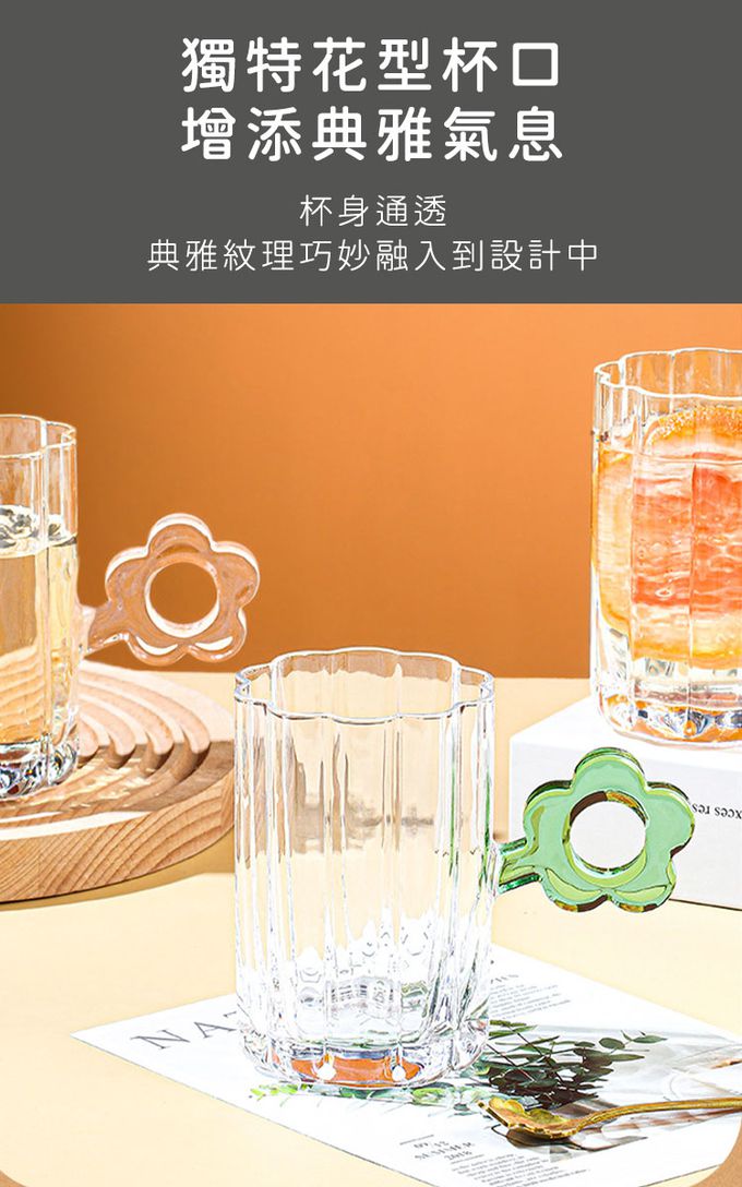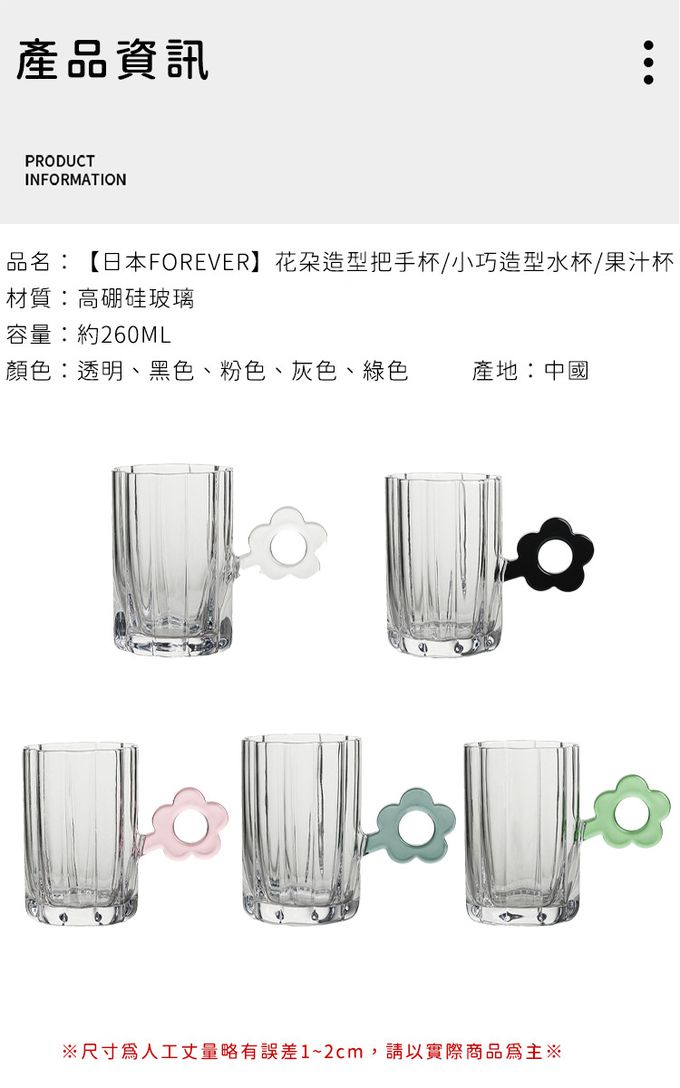品名:花朵造型把手杯/小巧造型水杯/果汁杯260ML-5入