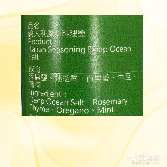 成分:義大利風味:海洋深層鹽、迷迭香、百里香、牛治、薄荷 山胡椒:海洋深層鹽、馬告、胡椒粒、青花椒、大紅袍花椒 麻辣:海洋深層鹽、雞心椒、死神辣椒