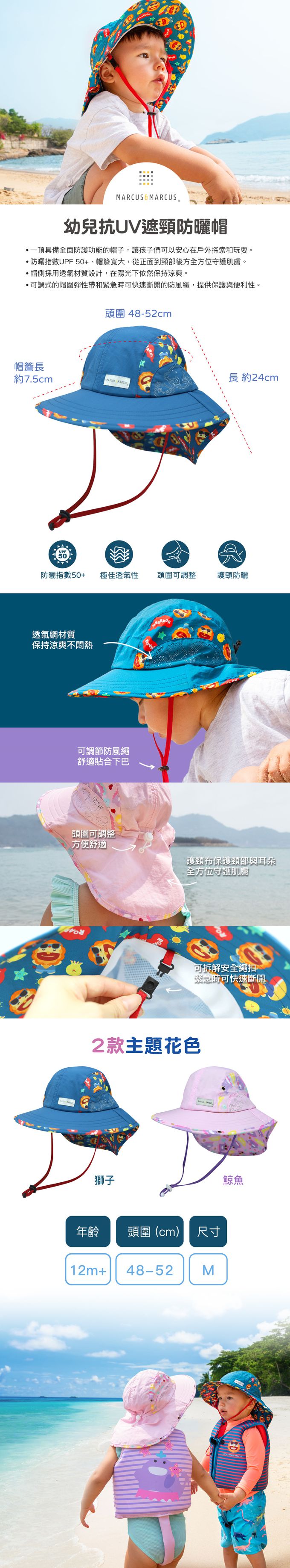 • 品名:幼兒抗UV遮頸防曬帽-獅子 (M:48~52cm/1歲起)