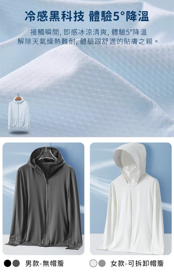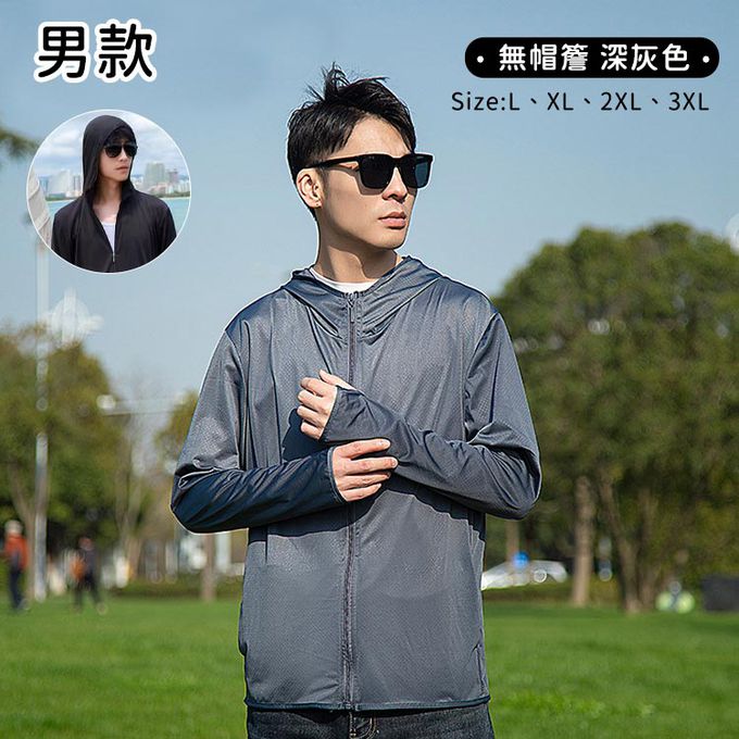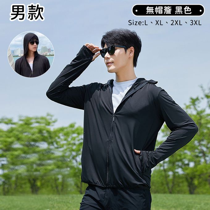 品名:(買一送一)夏季冰絲涼感外套/UPF50+抗UV防曬衣/速乾運動外套(男)-黑色
