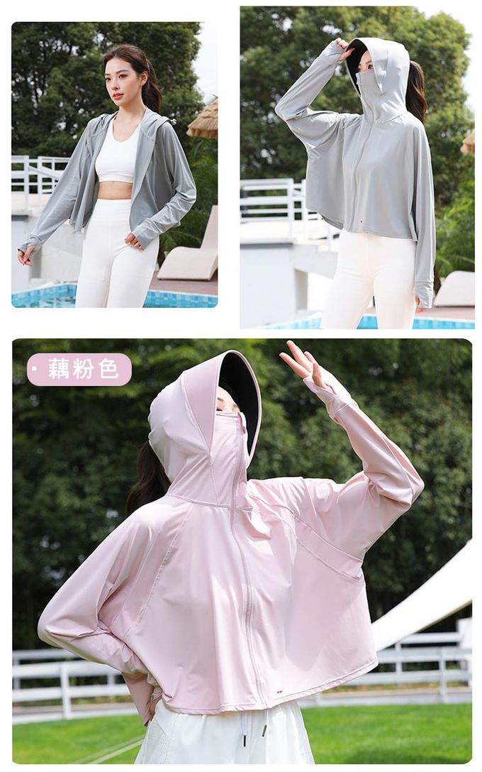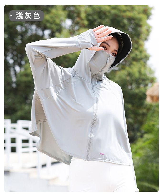 品名:(買一送一)夏季冰絲涼感外套/短版修身/UPF50+抗UV防曬衣/加大帽簷完全防曬(女)