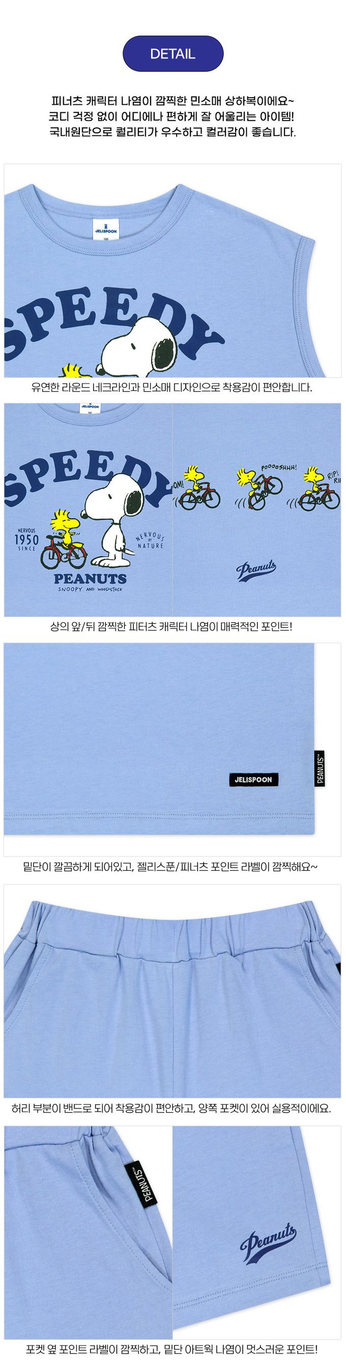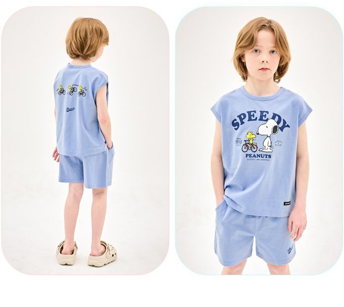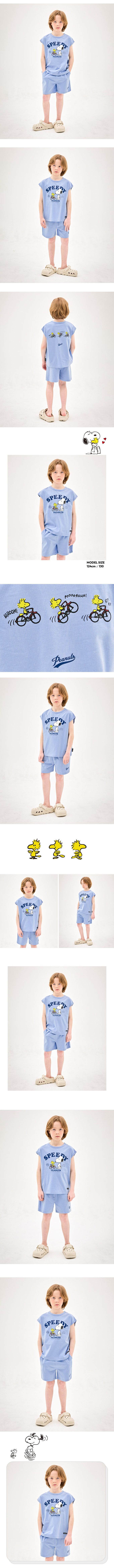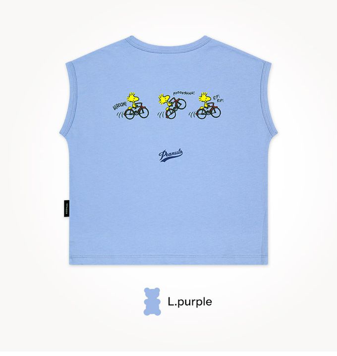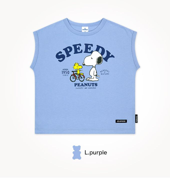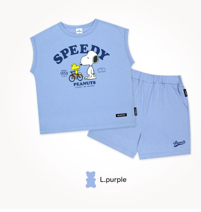 韓國 Jelispoon - (聯名款)腳踏車圖案純棉無袖套裝-卡通人物史努比-藍紫