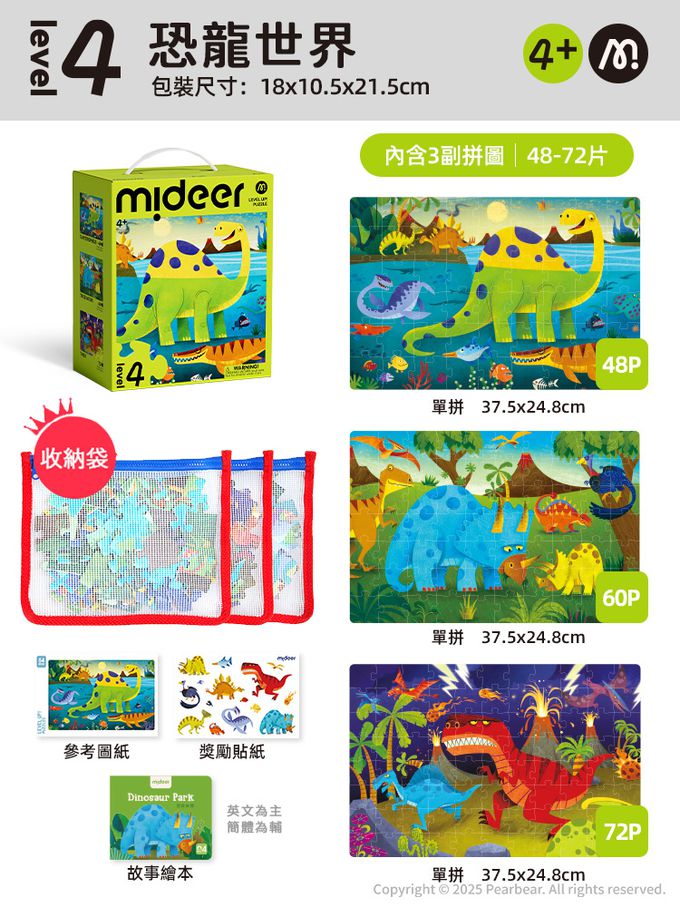MiDeer - 進階式拼圖-恐龍世界(LEVEL4),2025新版
