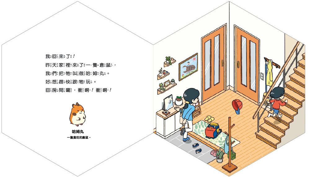 日本創新的六角形硬頁書設計,彷彿一間迷你房子,打造完整的立體空間,以及獨特的俯瞰視角,讓六角形書更加迷人!