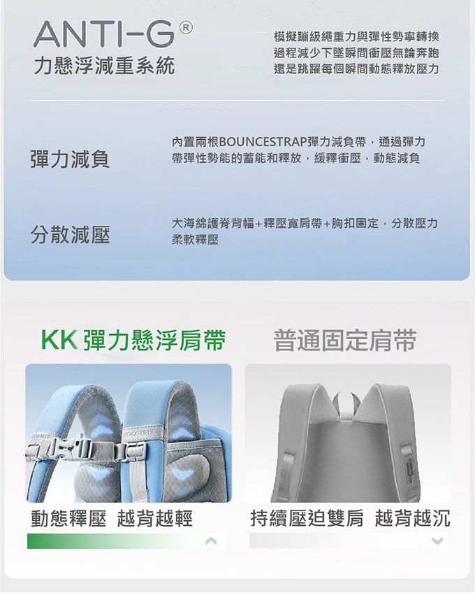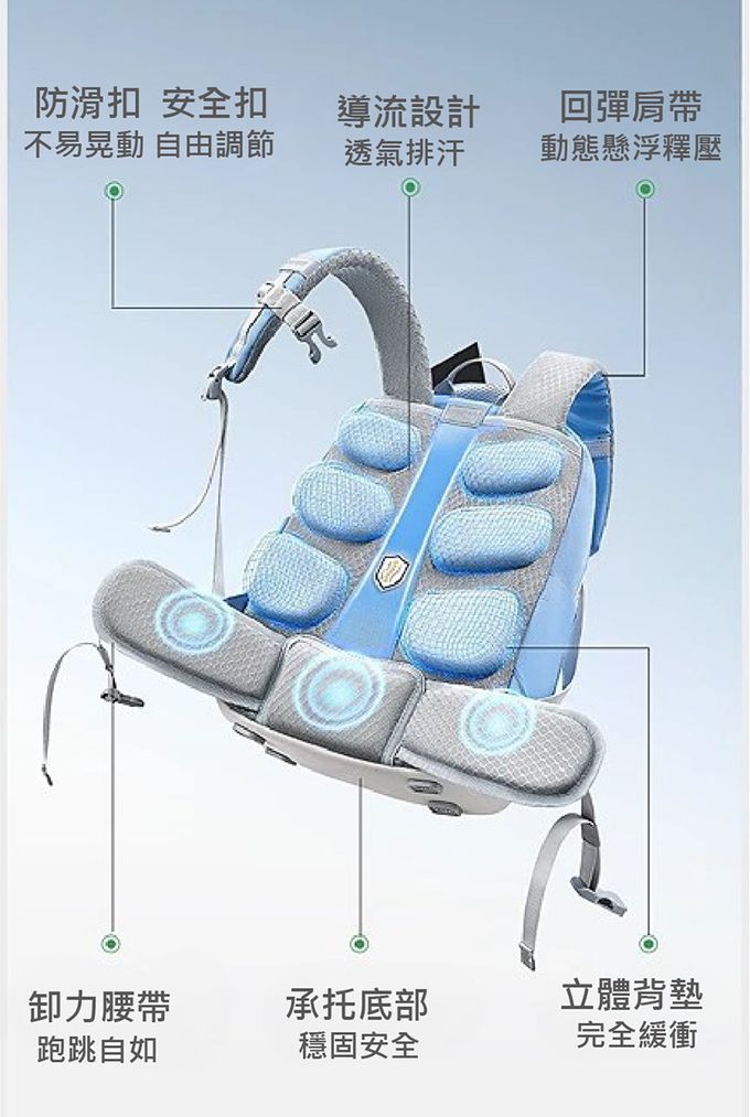 回彈背帶,有效釋壓,減少雙背壓迫