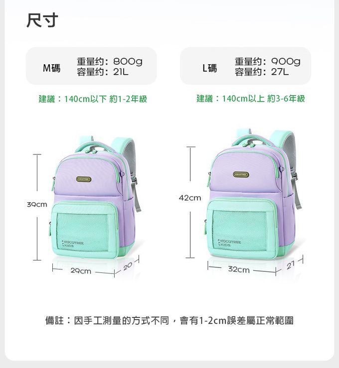 商品重(容)量:M碼-21L、L碼-27L