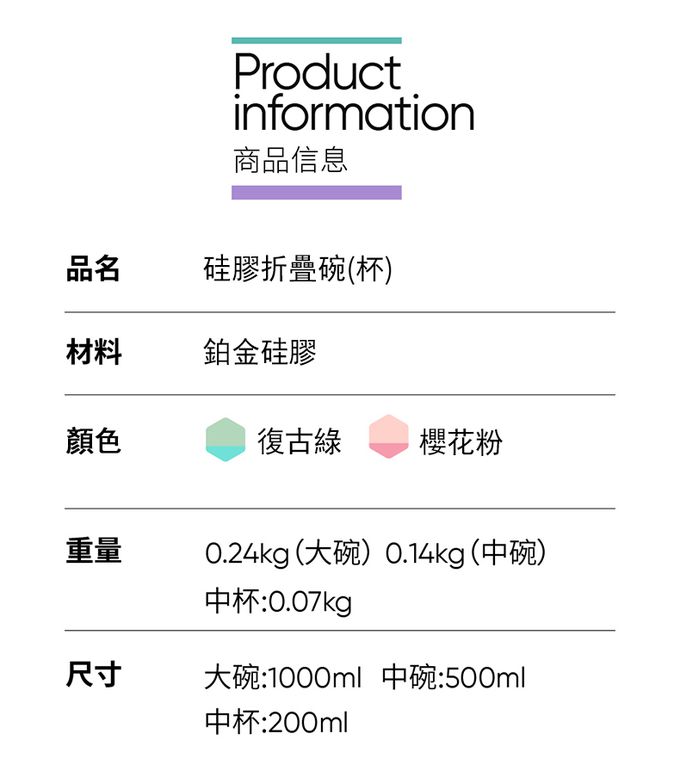 品名:新色折疊碗 L號+M號+中杯組合-拼色綠