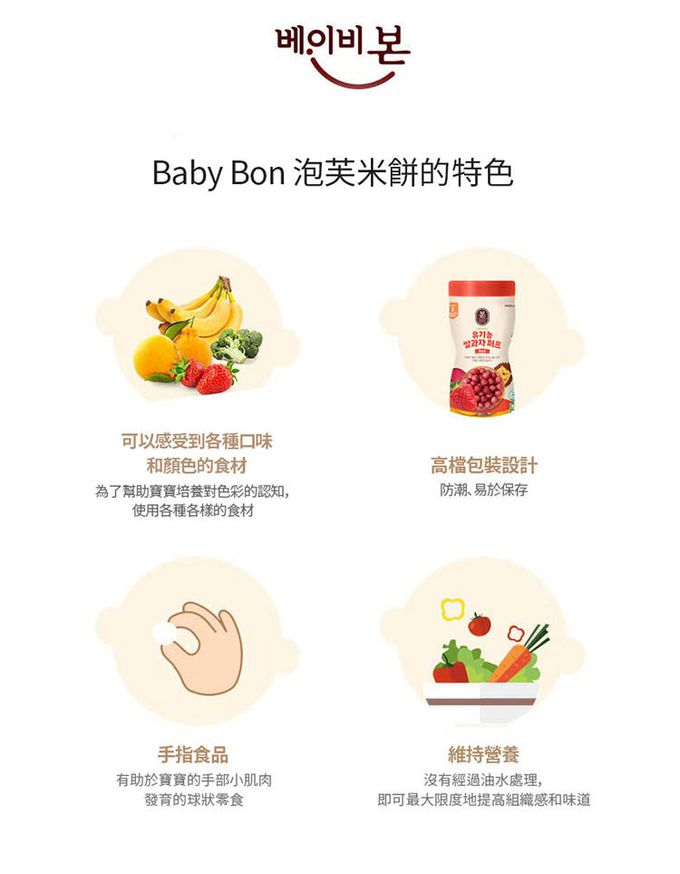 品名:baby bon泡芙米餅-草莓口味-3罐組-50克