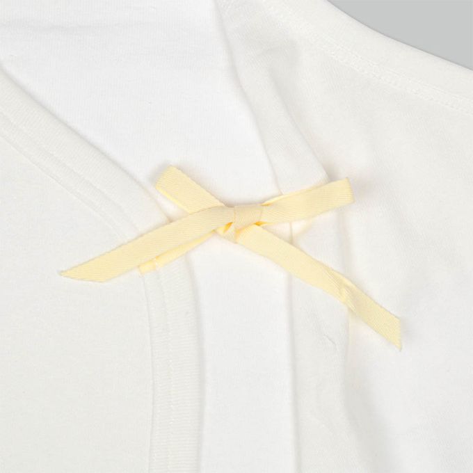 蝴蝶裝與肚衣一起穿,並扣上內側的釦子,即可讓活力充沛的小寶寶即使舞動雙腳,下擺也不易敞開。