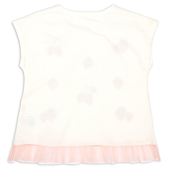 涼感短袖T恤-下擺薄紗-米白色
