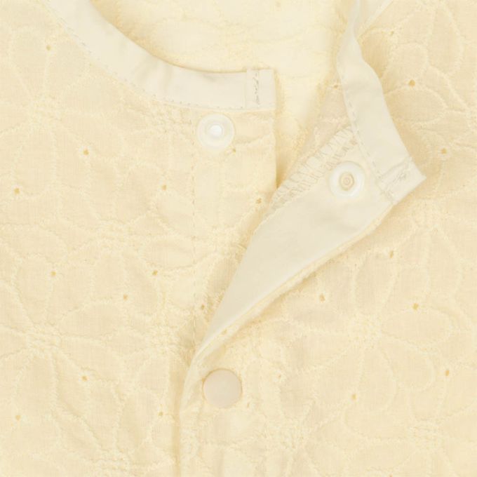 拼接處添加了蝴蝶結與抓皺設計,展現出蓬鬆的剪裁。