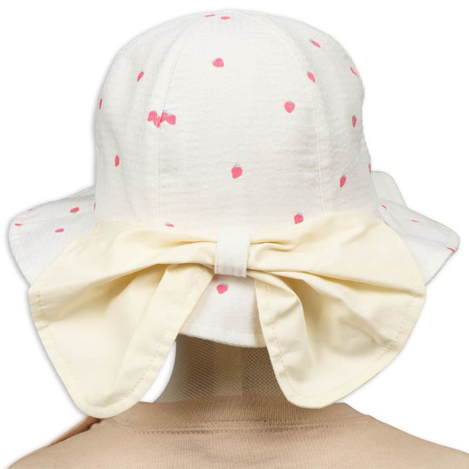 圓頂帽-滿版印花 蝴蝶結遮陽布-米白色