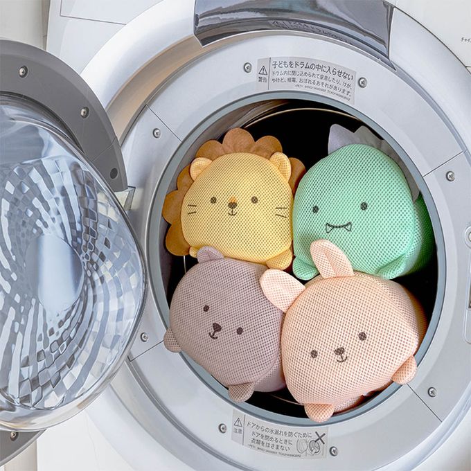 使用過的衣物可愛地收納隱藏,帶回家後直接放入洗衣機當洗衣袋使用。