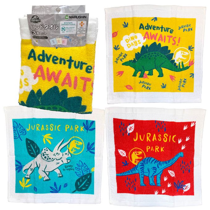 akachan honpo - 擦手巾3件組-侏儸紀公園 驚悚世界 (28×28cm)
