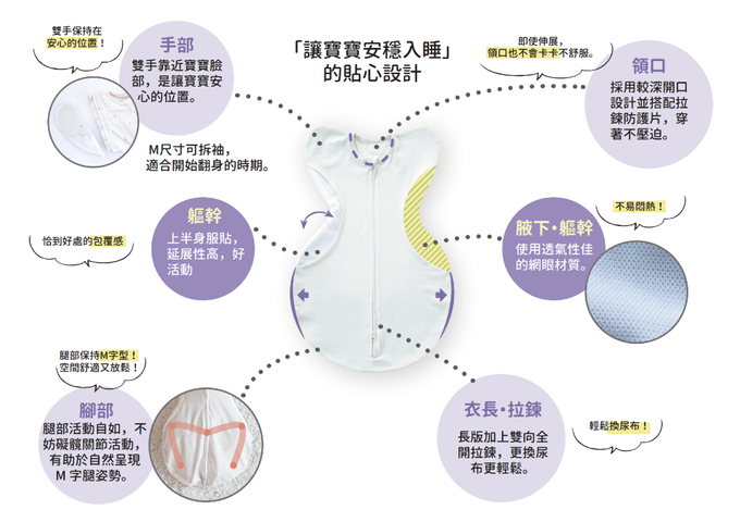 ●推薦亮點・透氣的網眼材質,夏天也適用・可機洗、可烘乾,清洗簡單・長版加上雙向全開拉鍊,更換尿布更輕鬆・立體設計貼合身形,貼合上半身不緊繃。
