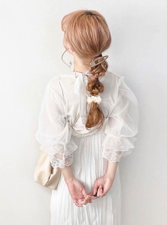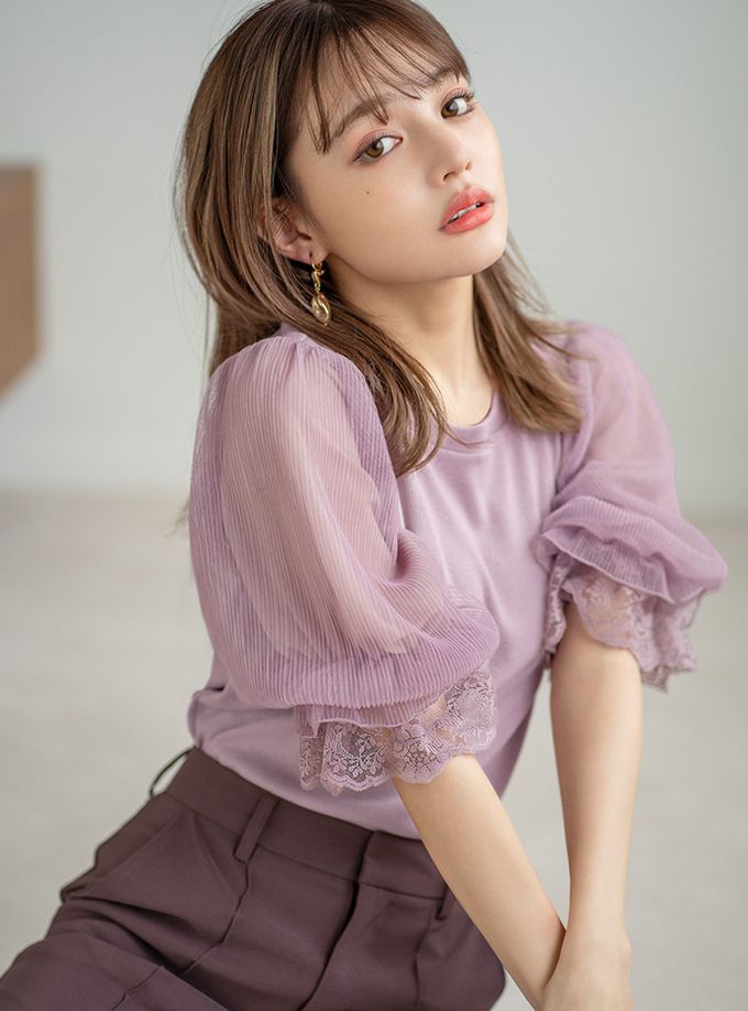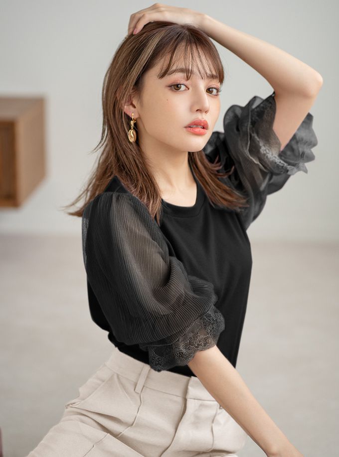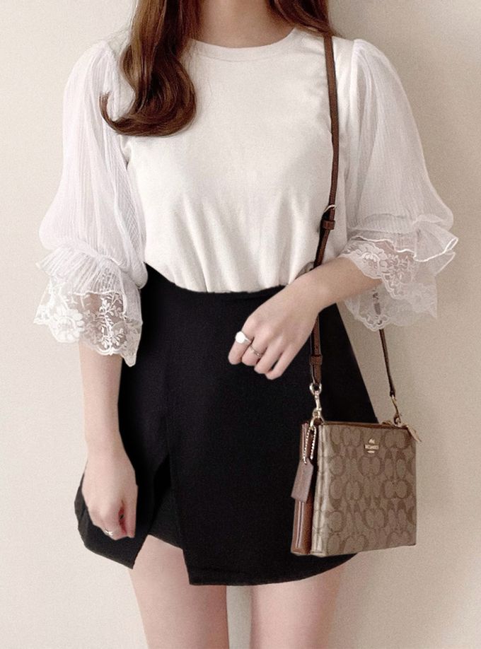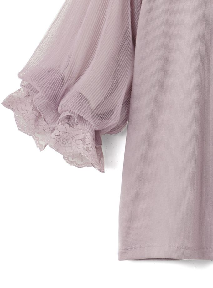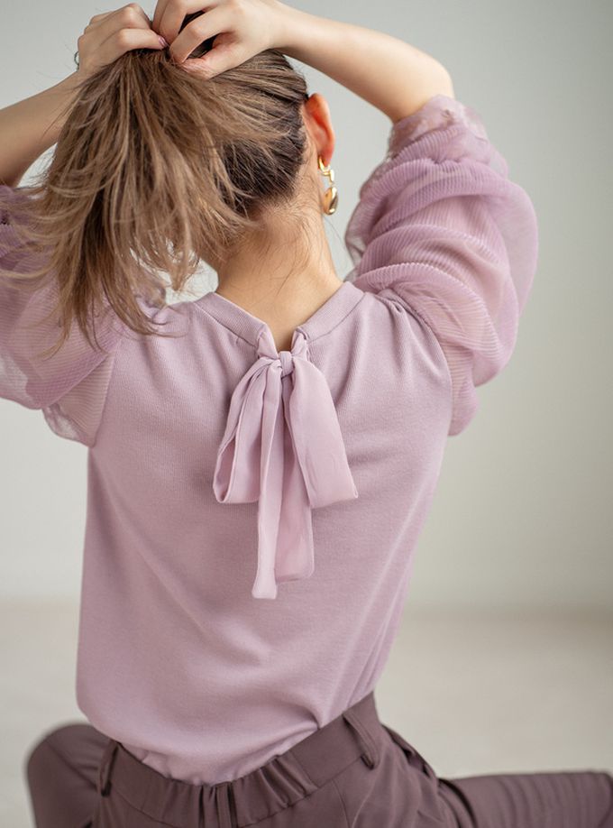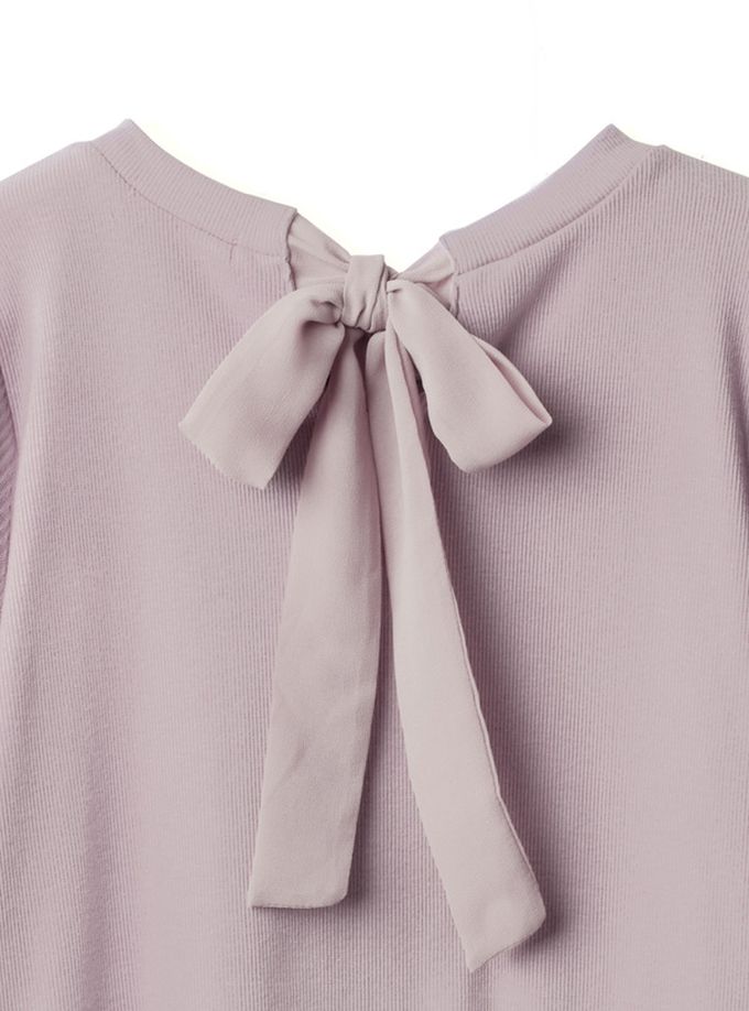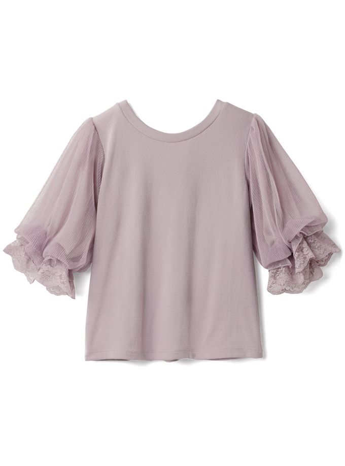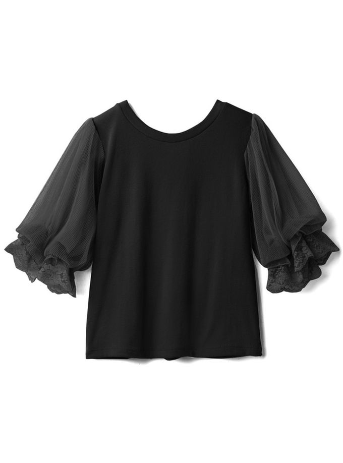 • 品名:背蝴蝶結浪漫薄紗蕾絲短袖上衣