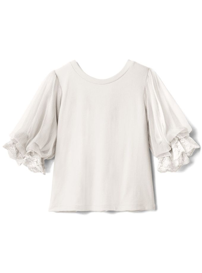 日本 GRL - 背蝴蝶結浪漫薄紗蕾絲短袖上衣-米白 (F)