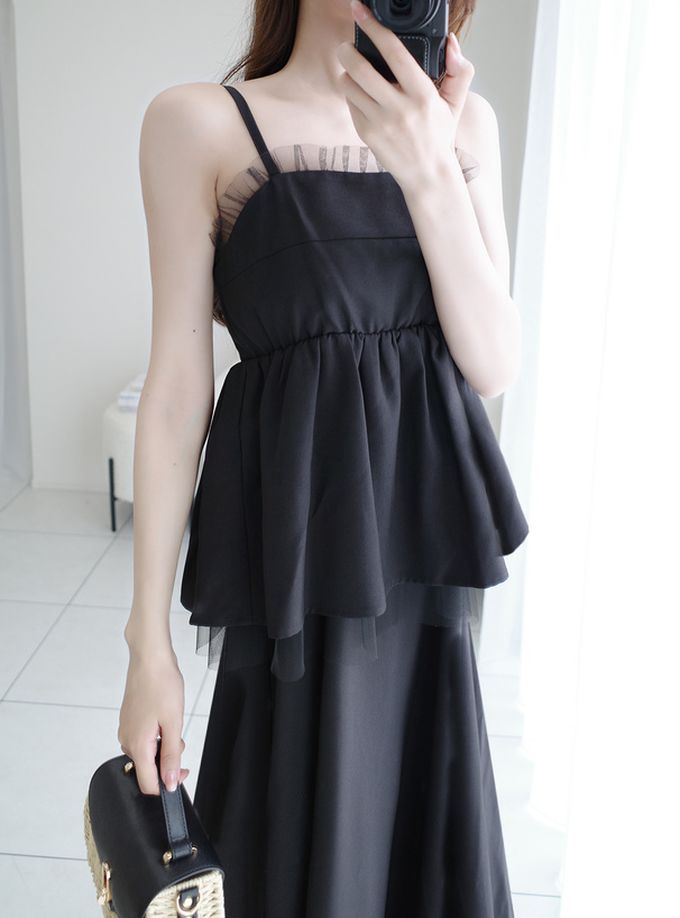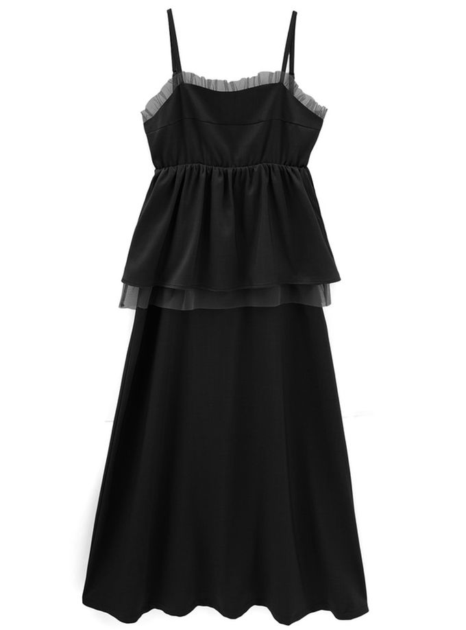 ![日本 GRL - 小V領氣質層次收腰無袖洋裝-經典黑]()