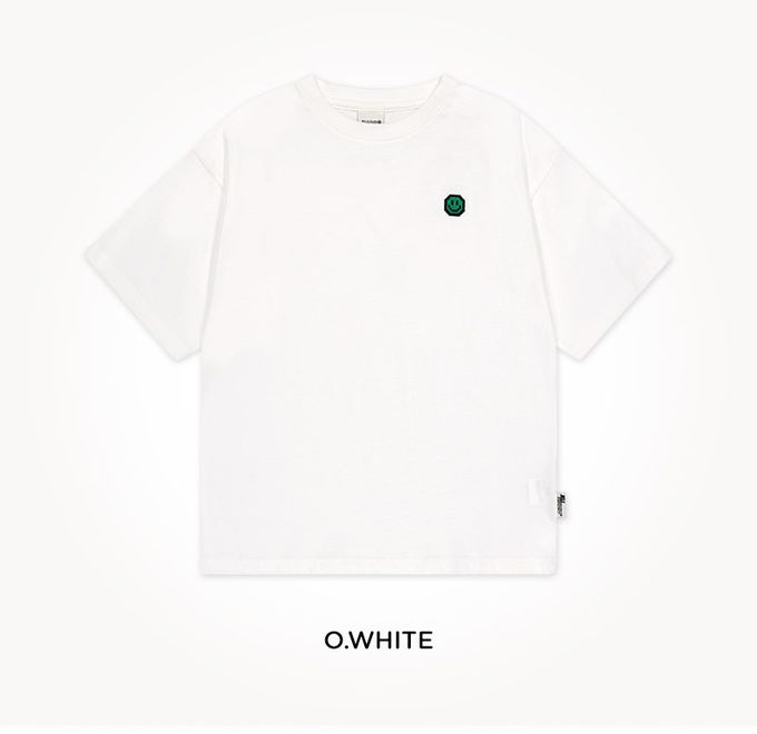 韓國 JELISTUDIO - 小笑臉裝飾寬鬆純棉短袖上衣-白