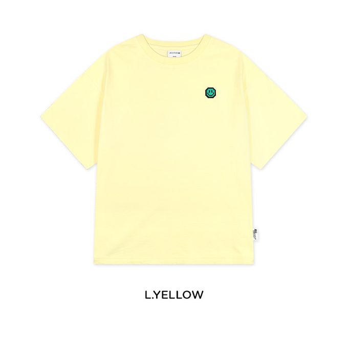 韓國 JELISTUDIO - 小笑臉裝飾寬鬆純棉短袖上衣-黃