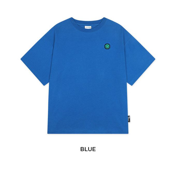 韓國 JELISTUDIO - 小笑臉裝飾寬鬆純棉短袖上衣-藍