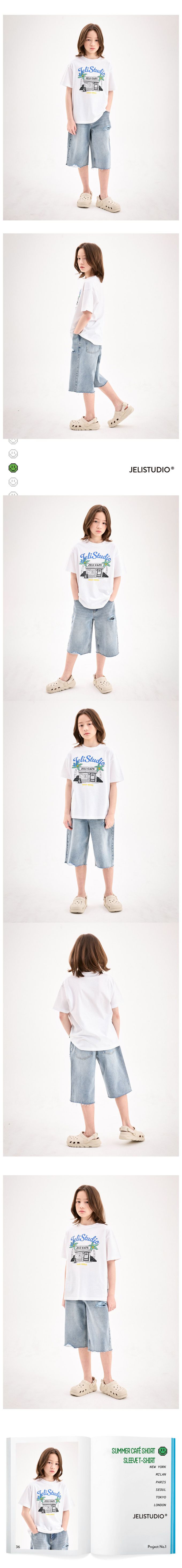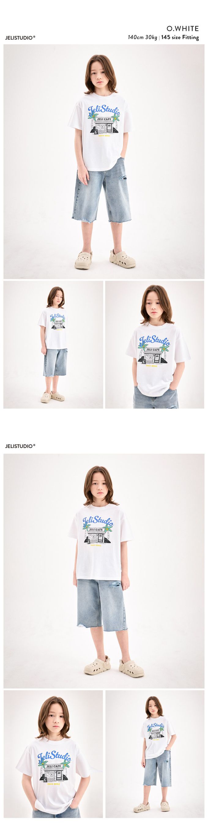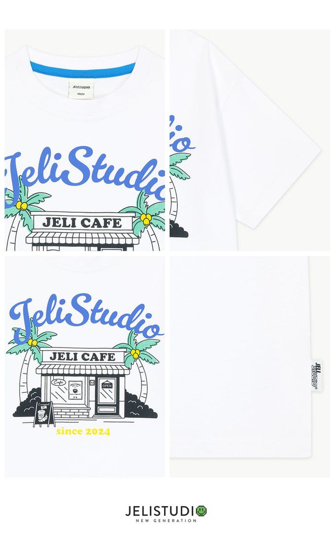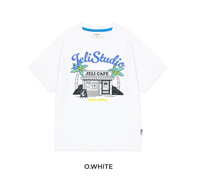 韓國 JELISTUDIO - 咖啡廳圖案純棉短袖上衣-白