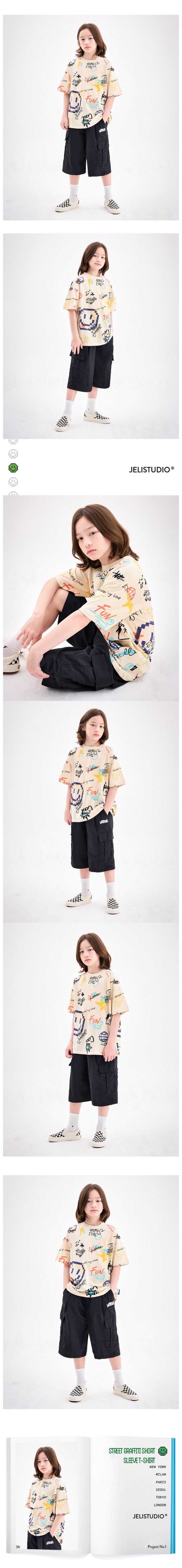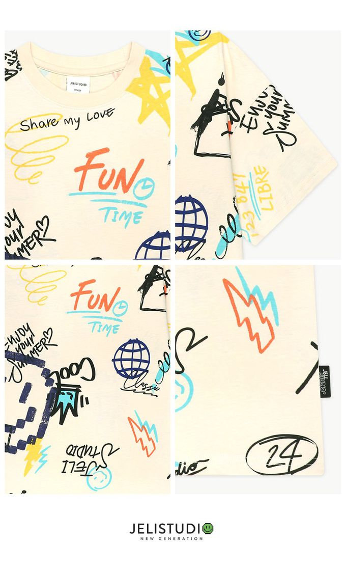 韓國 JELISTUDIO - 隨手笑臉塗鴉純棉短袖上衣-米黃