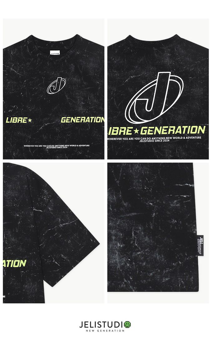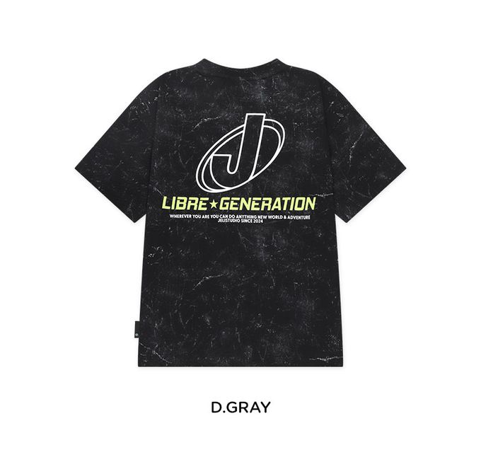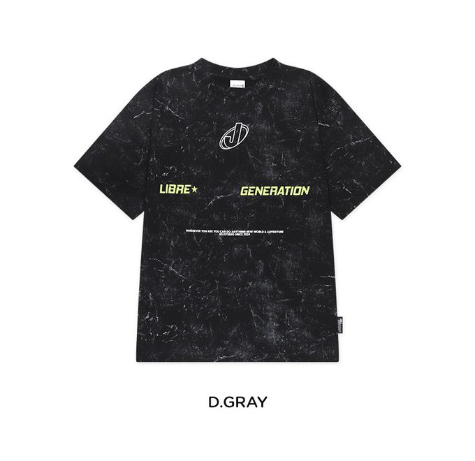 韓國 JELISTUDIO - 摩登斑駁印染風純棉短袖上衣-黑灰