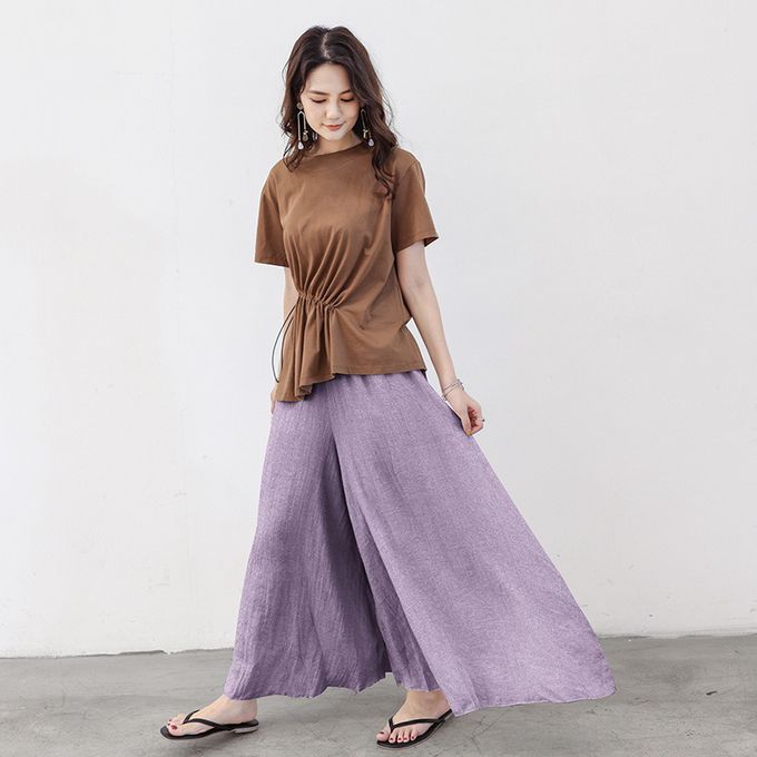 優雅百搭舒適顯瘦寬褲-含內裡-紫色 (F)