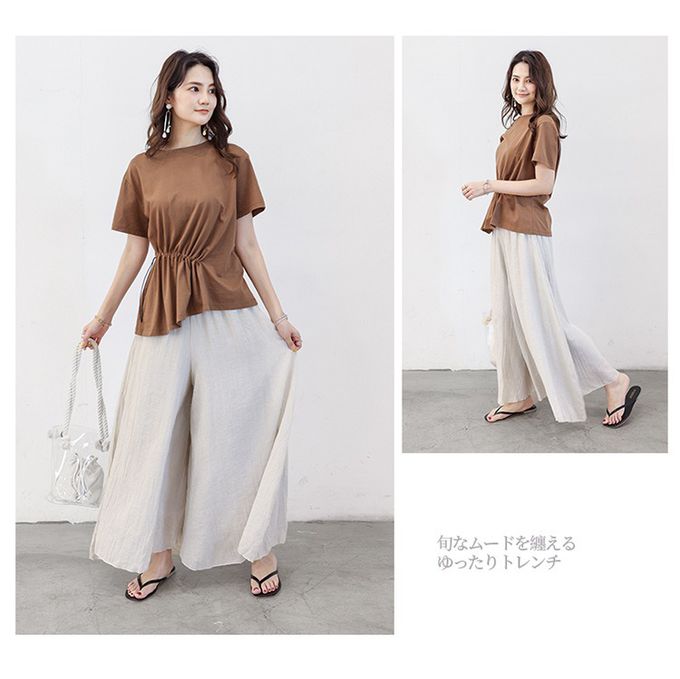 優雅百搭舒適顯瘦寬褲-含內裡-米色 (F)